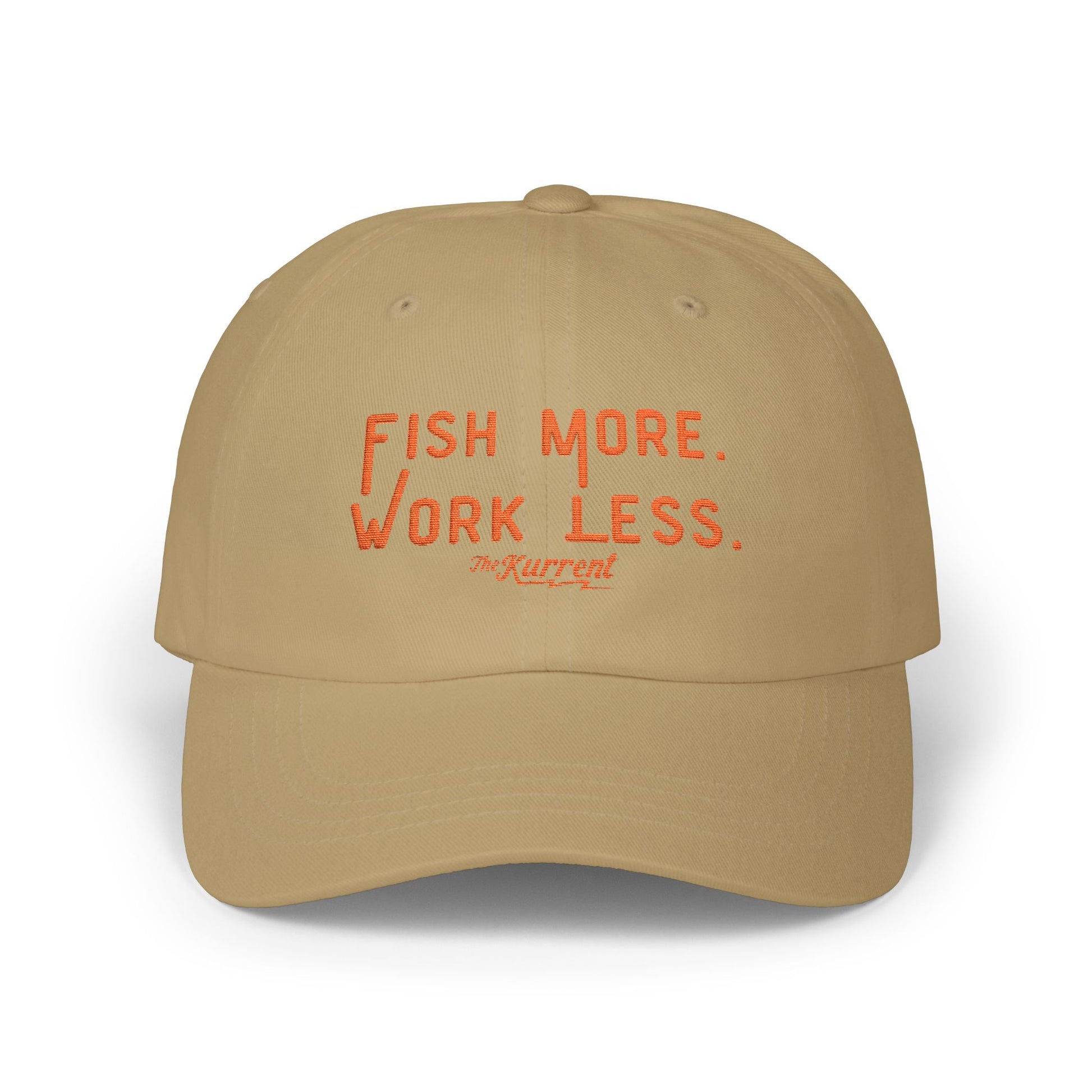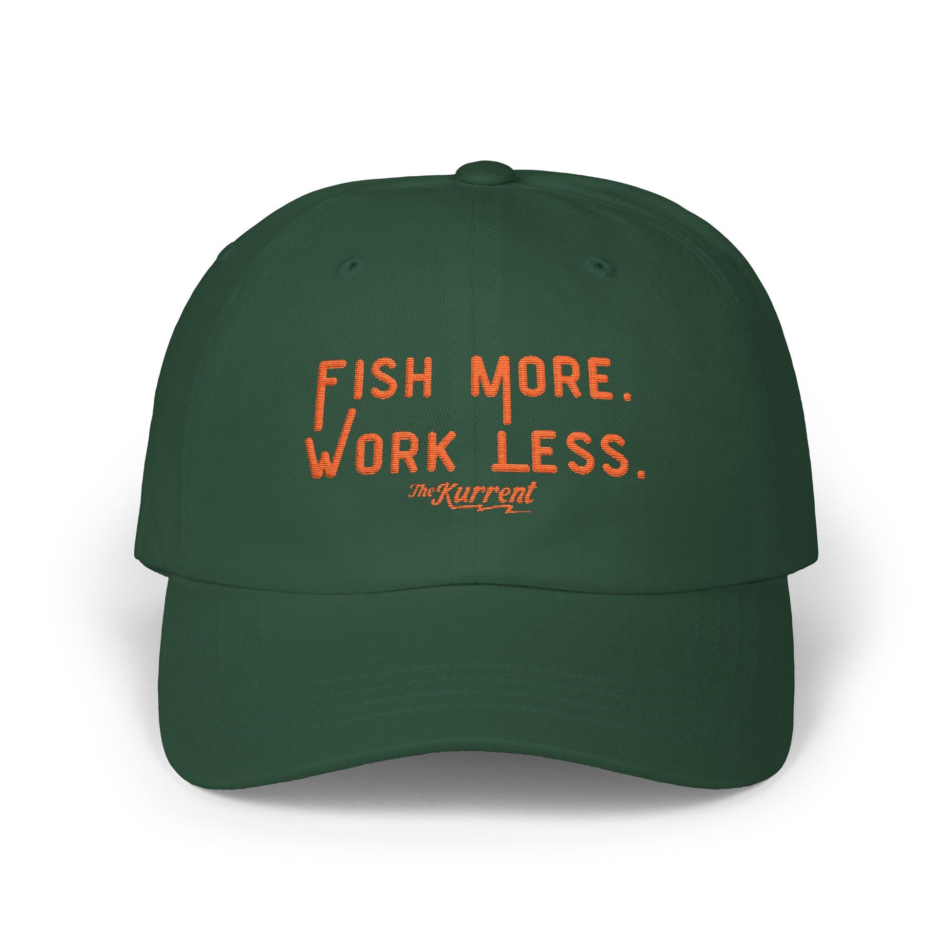 The Fish More. Work Less. Dad Cap from The Kurrent Supply is built for every early riser, late caster, and weekend warrior who knows the cure for burnout comes with a bent rod.