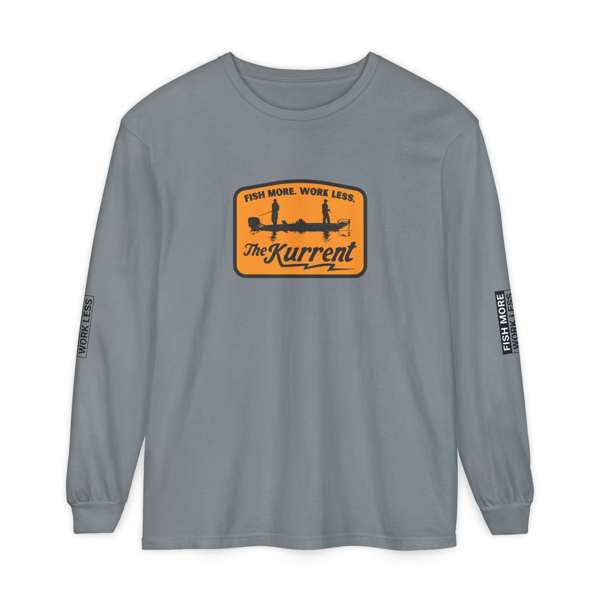 The Fish More. Work Less. — Bassin Edition from The Kurrent Supply is more than a long sleeve—it’s a statement of purpose. Featuring The Kurrent logo and your rig front and center, this tee celebrates the pursuit of freedom, balance, and a life built around the water.